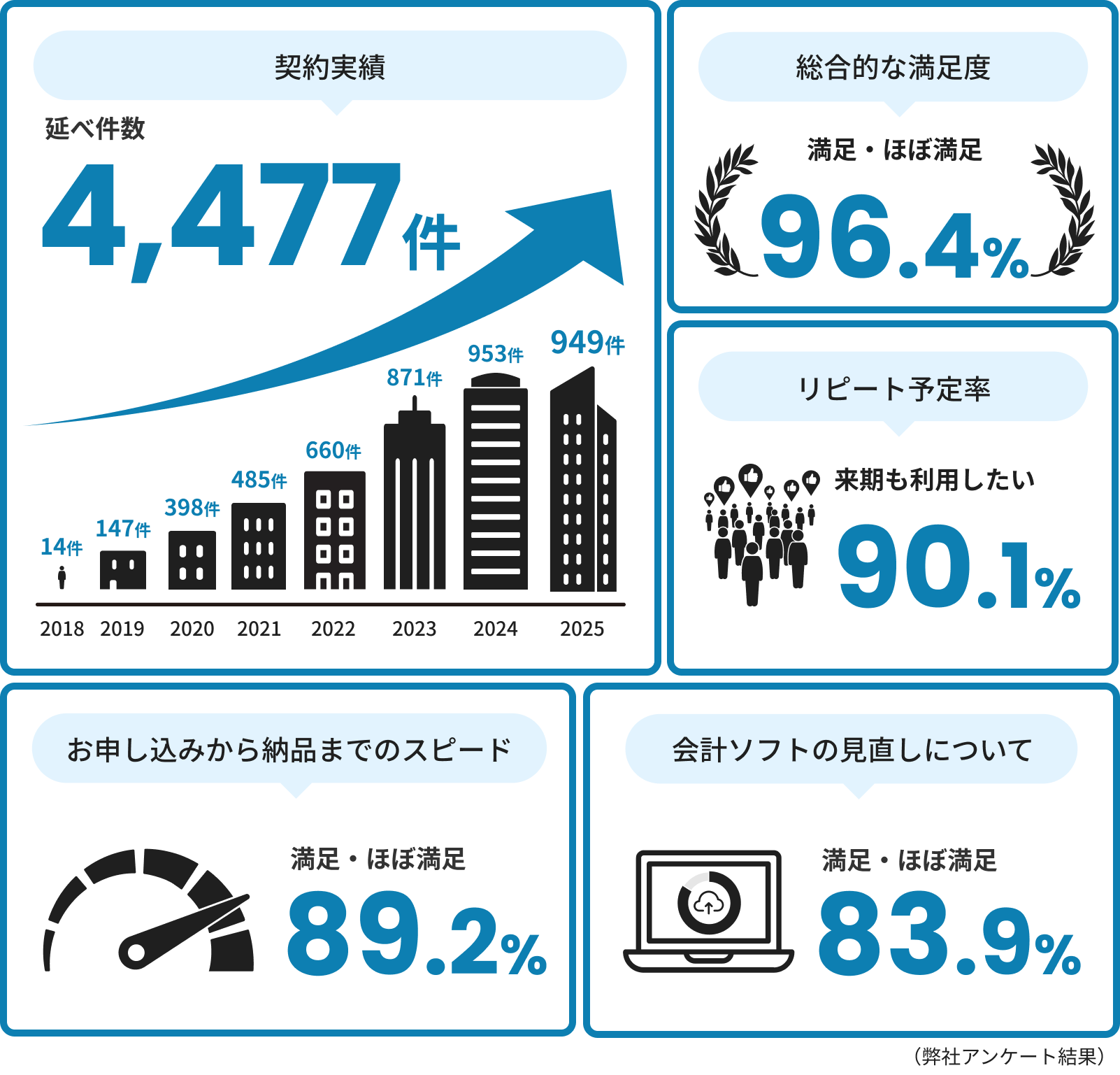契約実績延べ4,477件、リピート予定率90.1%の品質